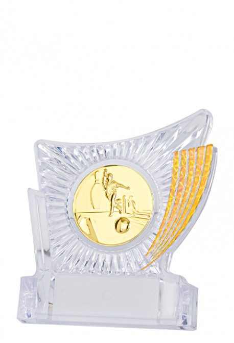 TROPHÉE PORTE-MÉDAILLE - Hauteur : 13 cm - Matière trophée : ABS métallisé - Finition : Transparent et Or - Pastille Dorée ou en couleur, collée sans supplément - Grand choix de disciplines disponibles - Personnalisation : Choisir votre activité ou votre Logo après étape 1